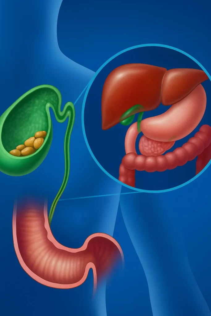 Los cálculos biliares son pequeñas “piedras” que se forman en la vesícula biliar a partir de sustancias presentes en la bilis, como el colesterol o la bilirrubina. Pueden variar de tamaño, desde granos de arena hasta alcanzar varios centímetros.